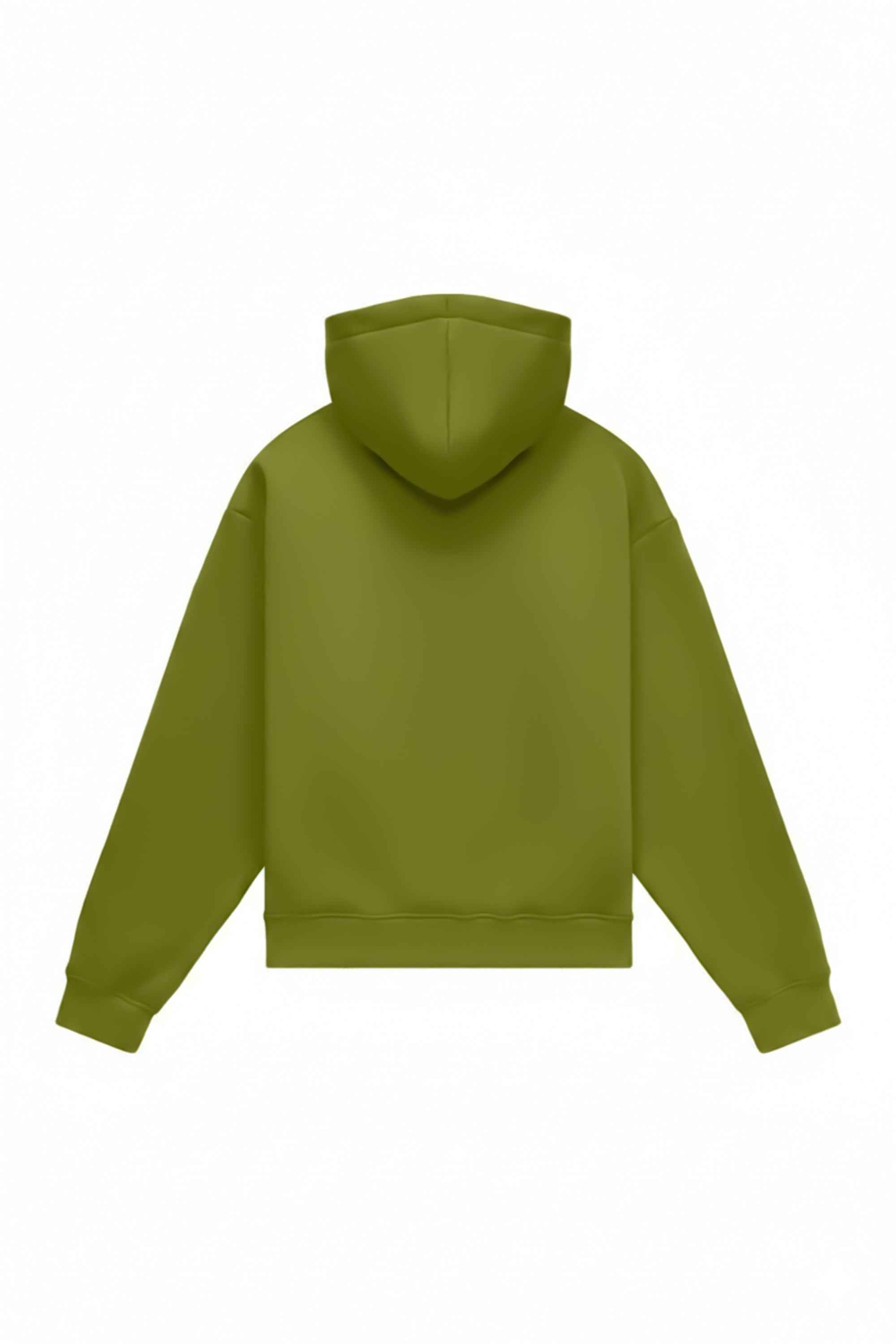 Green oversized hoodie with heavy loop fabric and hood, made in Poland